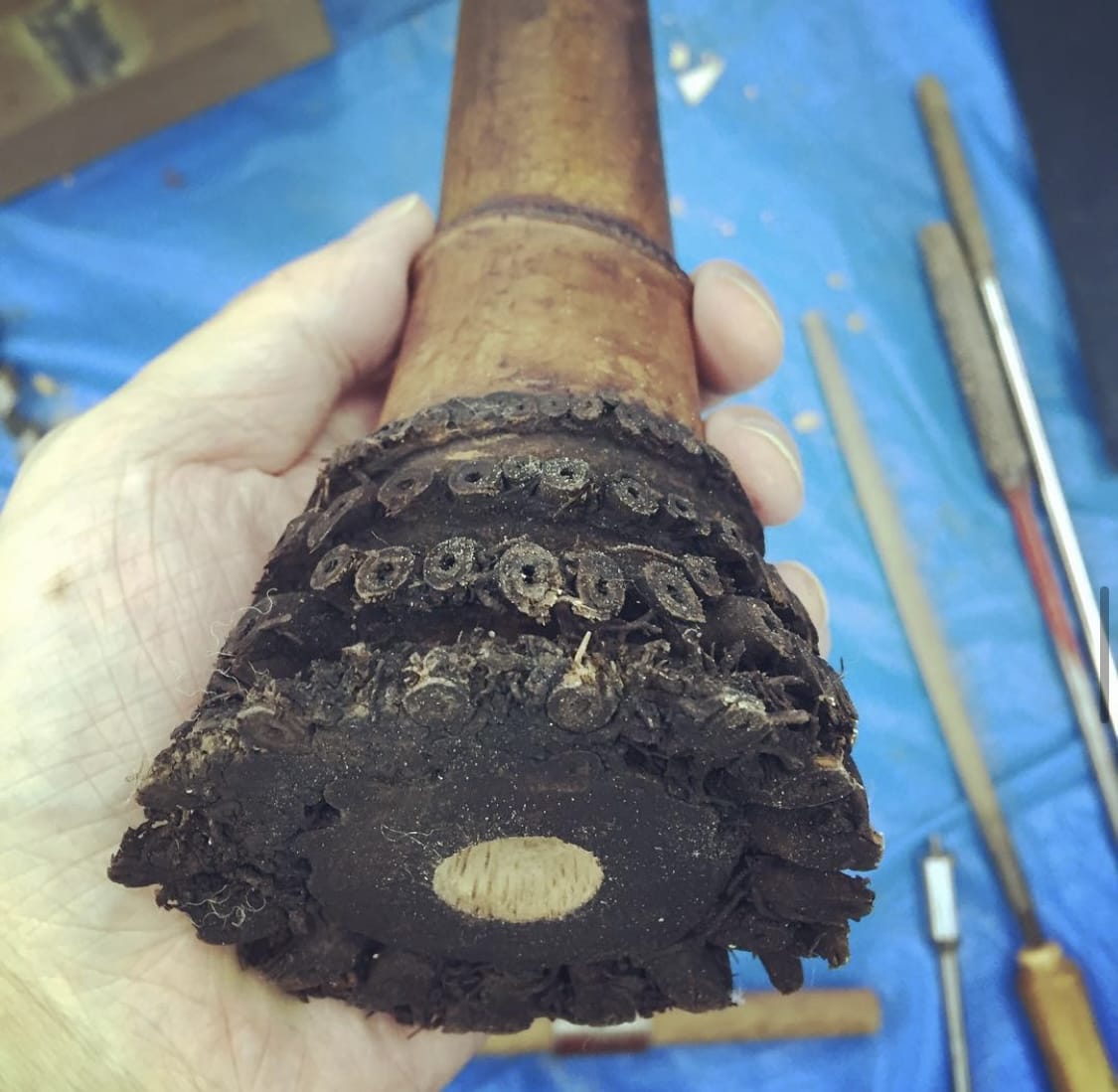 現代の地有尺八は管全体が石膏の層で形作られ、